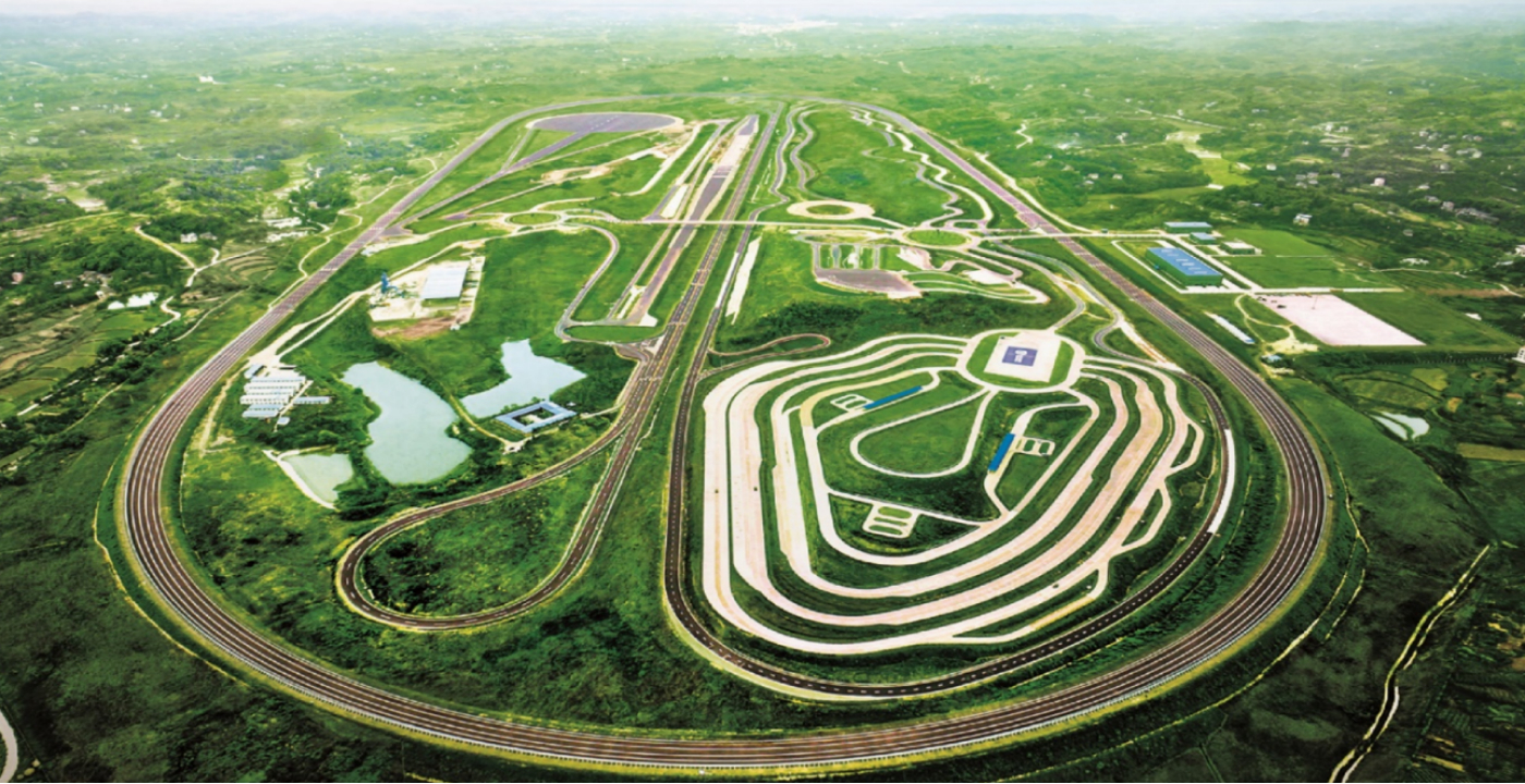El campo de pruebas integral de CHANGAN Automobile, construido con una inversión de aproximadamente 2000 millones de yuanes, ocupa una superficie total de unos 1400 hectáreas. Estas instalaciones incluyen una pista circular de alta velocidad, vías de rendimiento básico, zonas dinámicas, vías de pruebas de frenado, así como superficies específicas, como vías de evaluación integral de las propiedades generales del vehículo, vías de evaluación del ruido y vías de evaluación del confort. Cuenta con 13 carreteras principales, 4 puentes de acceso y cerca de 70 carreteras especiales, con una longitud total de más de 50 kilómetros.